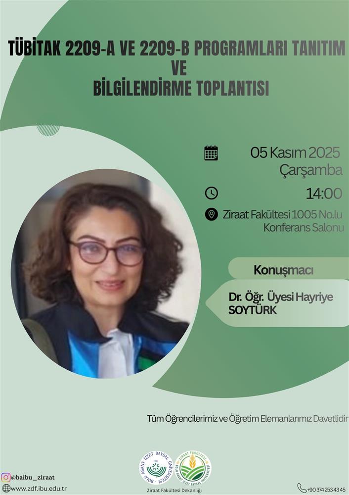 Fakültemiz tarafından, TÜBİTAK 2209-A Üniversite Öğrencileri Araştırma Projeleri Destekleme Programı ile 2209-B Üniversite Öğrencileri Sanayiye Yönelik Araştırma Projeleri Desteği Programı hakkında bilgilendirme toplantısı düzenlenecektir.