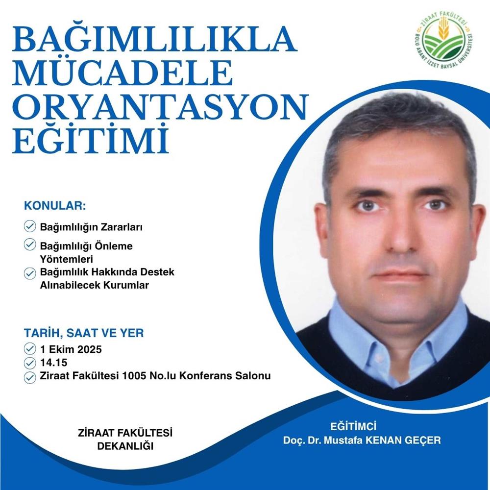 Ziraat Fakültesi, bağımlılık konusunun önemini göz önünde bulundurarak, bağımlılıkla mücadeleye yönelik bir eğitim düzenliyor. Eğitimin amacı, bağımlılığın zararlarını, önlenmesi için izlenecek yöntemleri ve bağımlılar için destek alınabilecek kurumları katılımcılara tanıtmaktır.