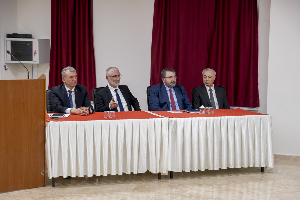 Toplantı, Rektörümüz Prof. Dr. Faruk YİĞİT’in katılımıyla gerçekleştirildi. Toplantıya Rektör Yardımcılarımız Prof. Dr. Feridun KAYA ve Prof. Dr. Kaya YILDIZ ile Genel Sekreter V. Prof. Dr. Yusuf CERİT de iştirak etti.